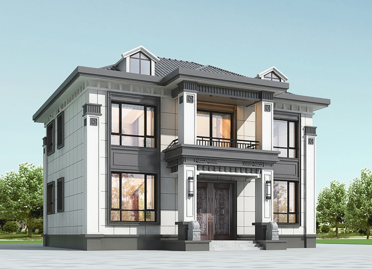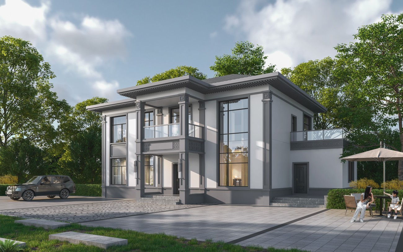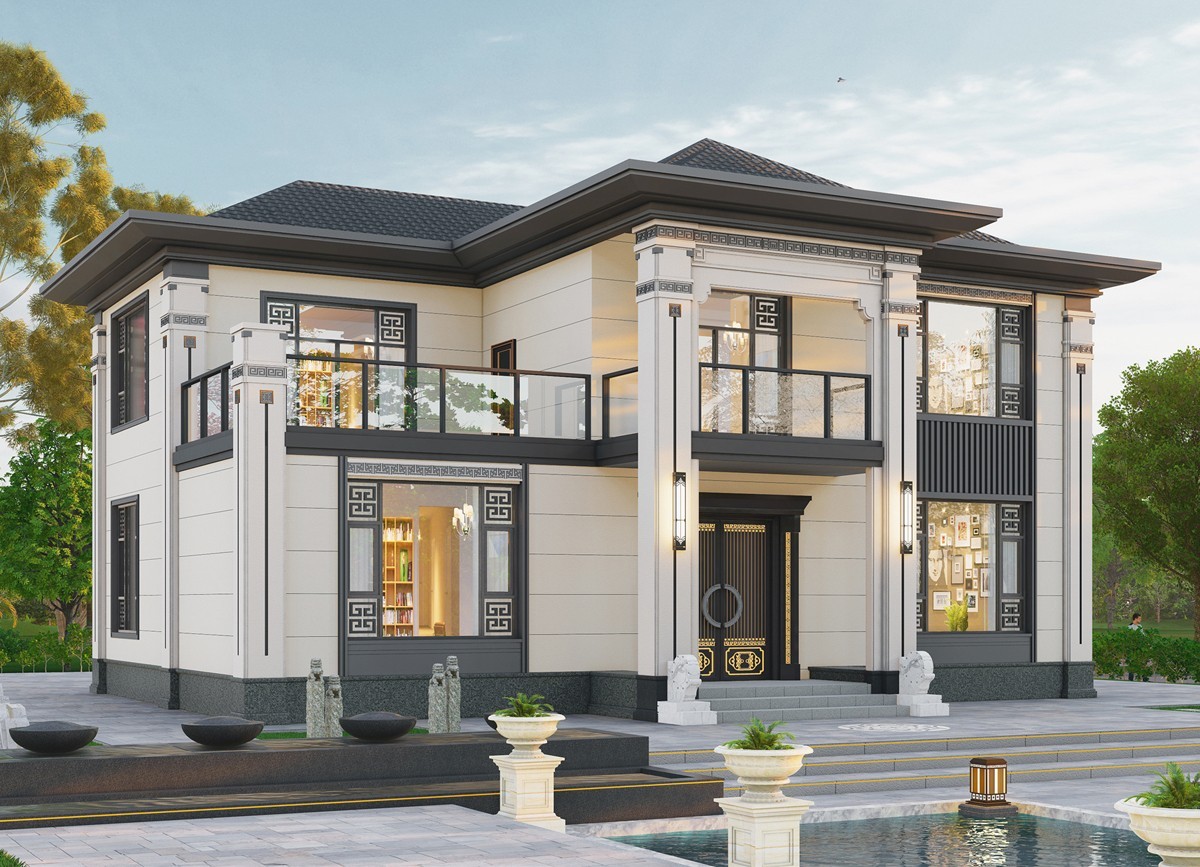 富顺005 两层新中式(11.36x11.76米)-【易设计】